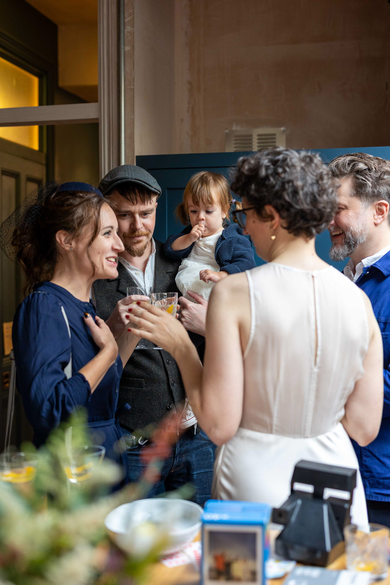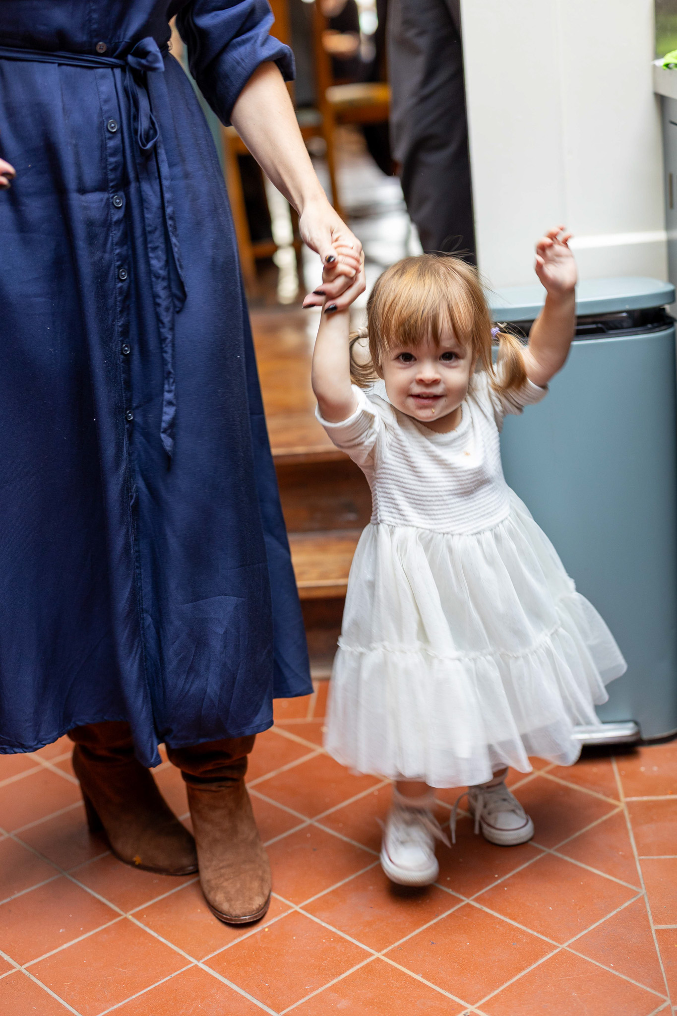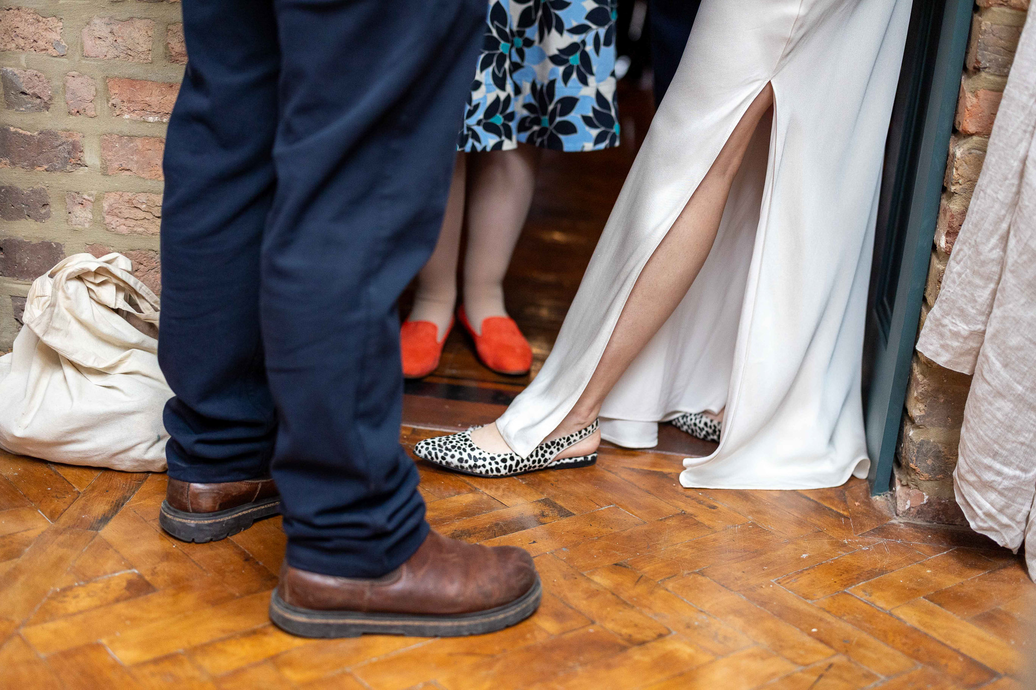Walk around wedding photography for the intimate at wedding of Alex and Olivia in their London home and garden.