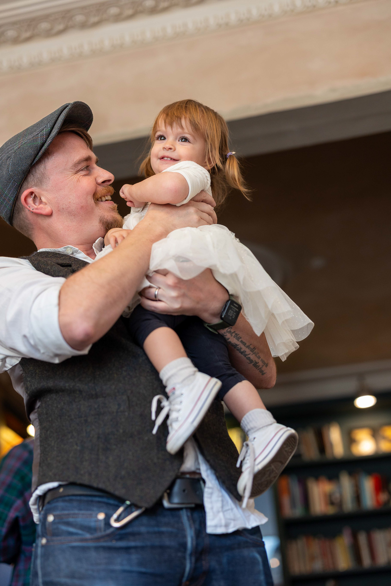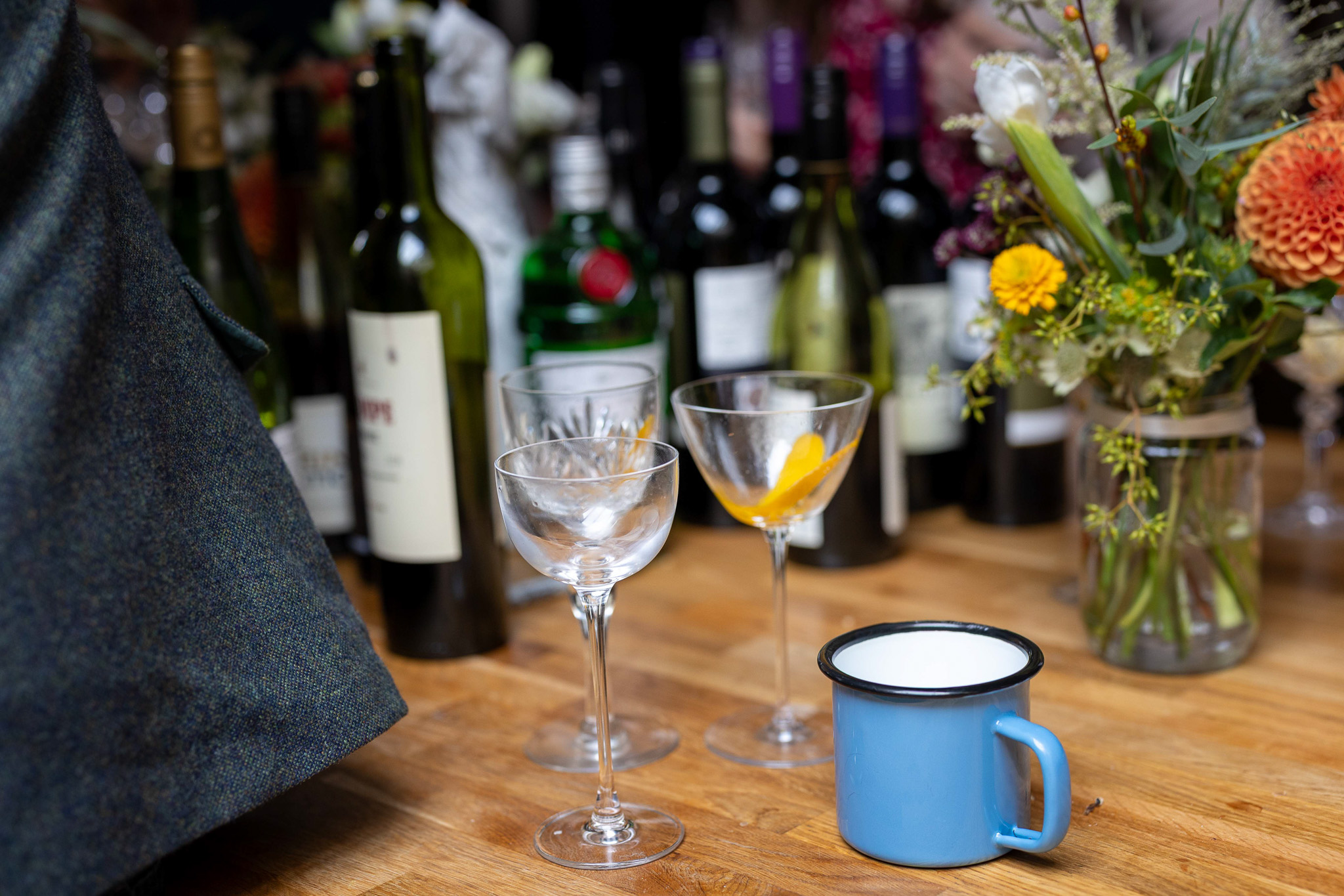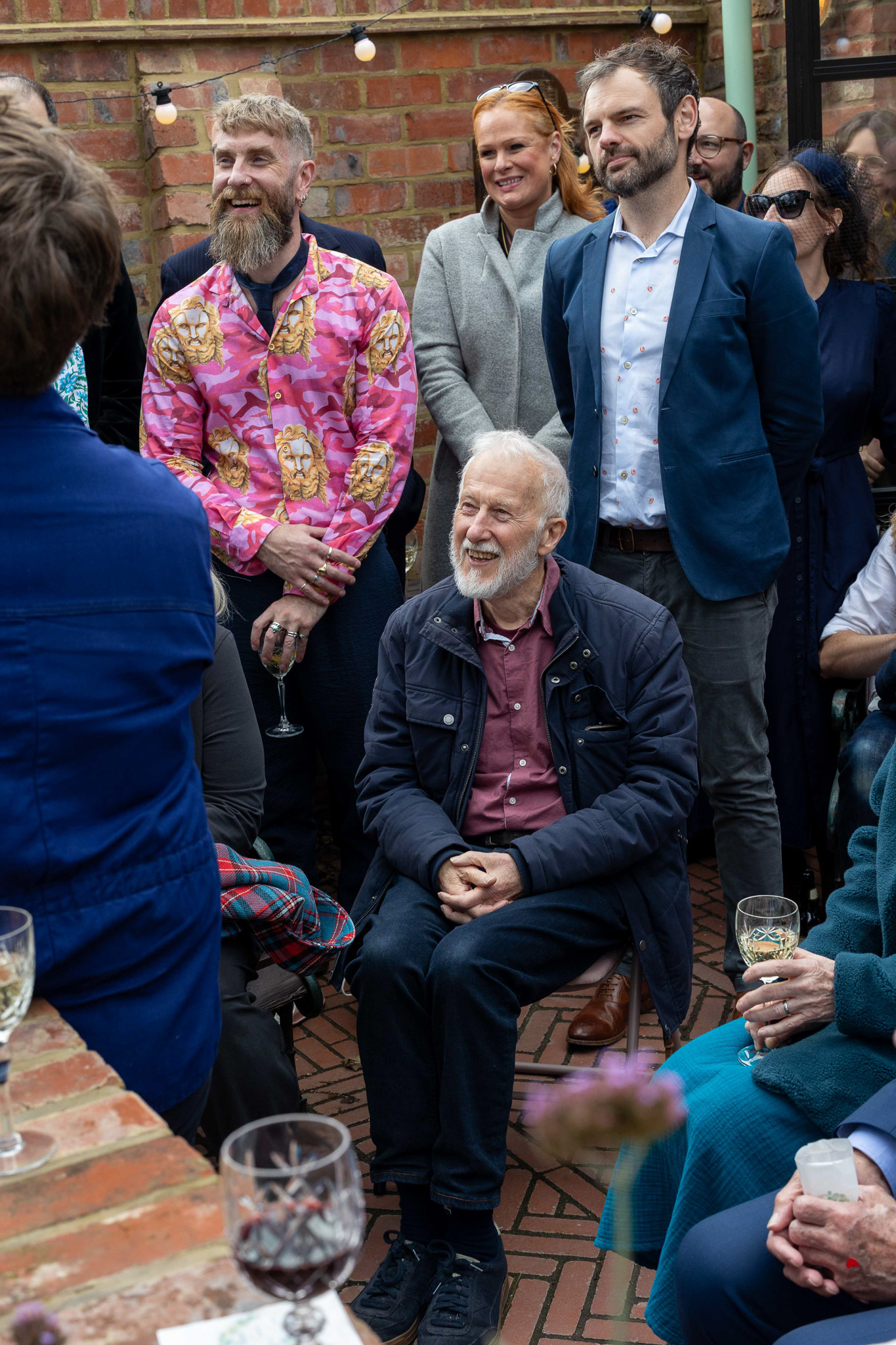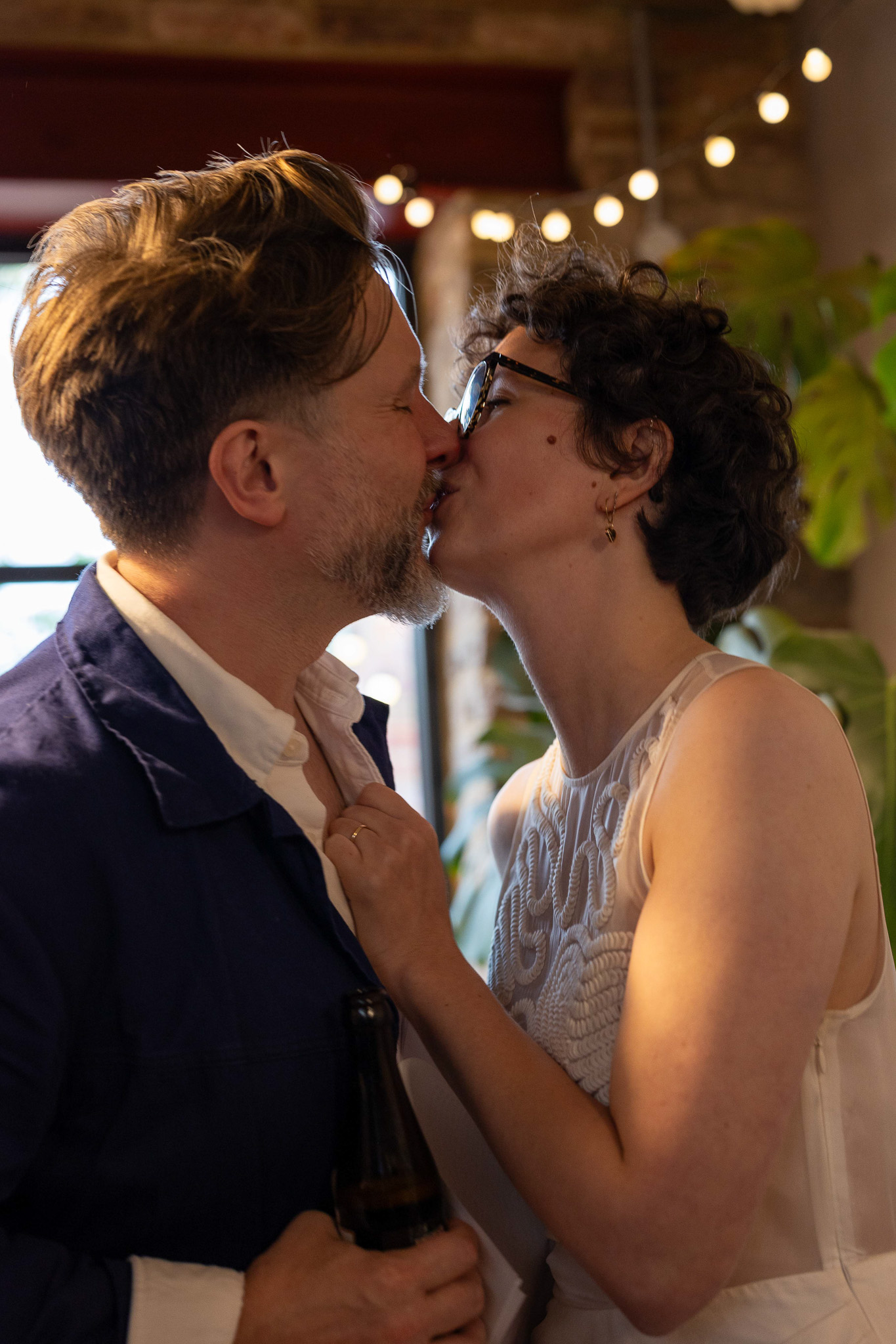 Walk around wedding photography for the intimate at wedding of Alex and Olivia in their London home and garden.